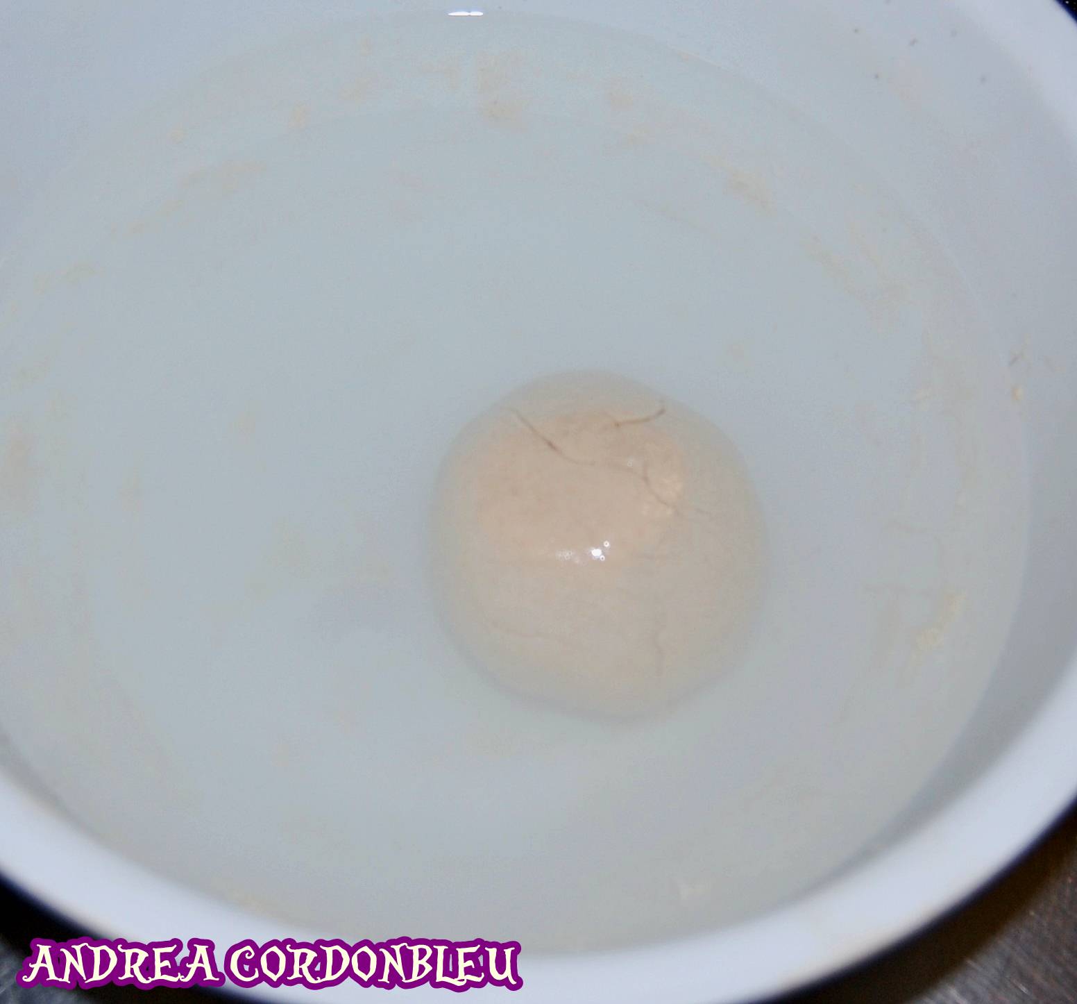Se pone agua templada en un recipiente y se sumerge la bola. Se tapa con film trasparente. Se usa la bola en cuanto suba a la superficie, en unos 5 ó 10 minutos.