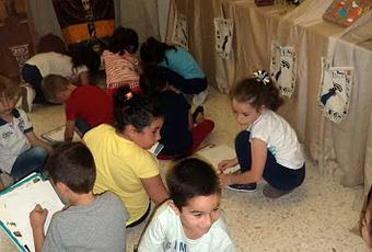 Luego en clase, tras escribir el cuento de Fátima, nos decidimos por convertirnos en momias con nuestro propio sarcófago.Primero nos momificamos a nosotros mismos, ¡ qué miedo !.