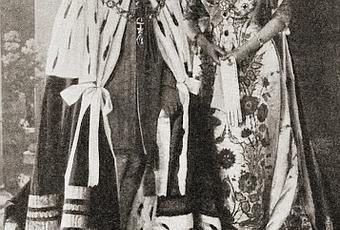 El rey Jorge V y la reina María de Teck con sus trajes de Estado tras la