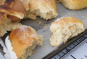 Y las colocamos sobre el bollo como vemos en el vídeo de esquina hasta la otra esquina, escondiendo la puntita de la tira por debajo.