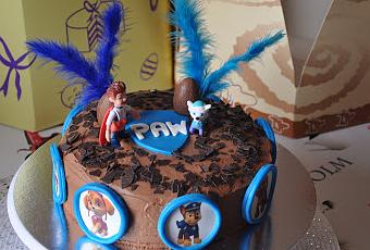 La de arriba de la patrulla canina con frosting de queso mascarpone y chocolate.