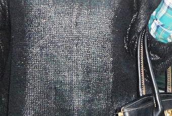Un total black roto gracias al color en la camisa con detalles en el cuello.Shorts de crochet y slippers.