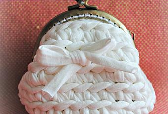 Os enseño un monedero de trapillo blanco, con una boquilla preciosa, lleva unas bolas blancas que me enamoré de ella en cuanto la vi.
