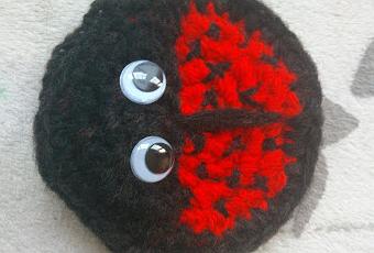 Con tan solo dos colres: rojo y negro, y un par de ojos molones, esta mariquilla ha quedado bastante graciosa, ideal para meter dinerillo y tarjetas de credito. espero que os guste.