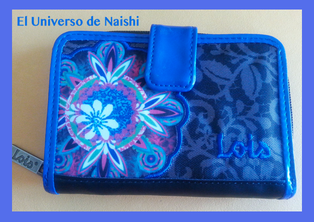 Y este es el monedero!!!!Es el modelo Manila, tiene un estampado floral muy original en la parte de delante, con el nombre de la marca Lois bordado y grabado en la plaquita de la cremallera, además se cierra con broche.