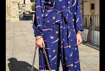 Este es de Kling y me encanta porque es muy cómodo y con mucho color. Además, llevo pendientes de Condesa Furiosa, colgante astronauta de capsula concept y anillo de El otro tigre.