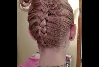 Suerte que tenía a una peluquera cerca para crear ésta obra de arte. La ropa de aquella noche pasó a un segundo plano... lo novedoso era el peinado, muy duradero gracias a esa trenza de raíz.