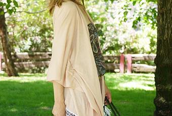 Ésta nos enamoró desde el primer momento porque es súper ligera y con un tono nude que combina fenomenal con casi todo. Los flecos en color crudo nos encantan y es ideal para las noches de verano que corre algo de brisa.