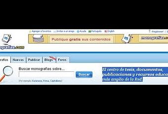 Monografias.com es un sitio dedicado especialmente a estudiantes en busca de recursos educativo y material relacionado a lo que necesite. Gran cantidad de material en documentos con los temas mas variados, todo disponible gratis para descargar y guardar en nuestro computador desde el sitio Monografias. Al ingresar al sitio monografia rapidamente note una gran similitud al sitio que anteriormente les mencione, RinconDelVago, sitios hechos total y exclusivamente para los estudiantes ya sea de enseñanza media o superior. Si no encuentras algo en un sitio puedes probar con el otro, ten presente para tus investigaciones y trabajos ambas alternativas.