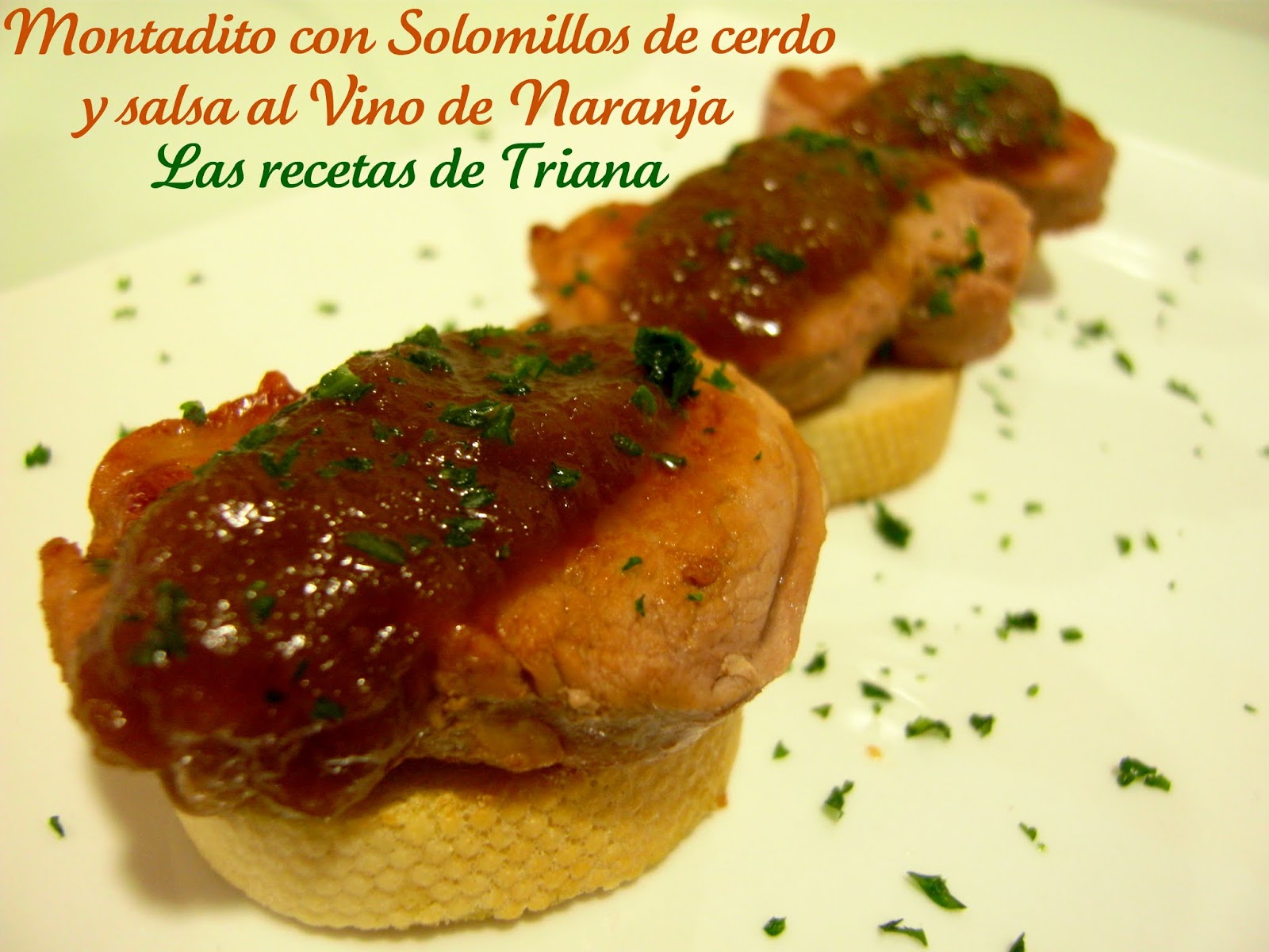 Montadito con solomillos de cerdo y salsa de vino de naranjaIngredientes carne2 Solomillos de cerdoAceite de oliva virgen extraPimienta SalIngredientes salsa2 cebolletas frescas1 zanahoria3 dientes de ajo