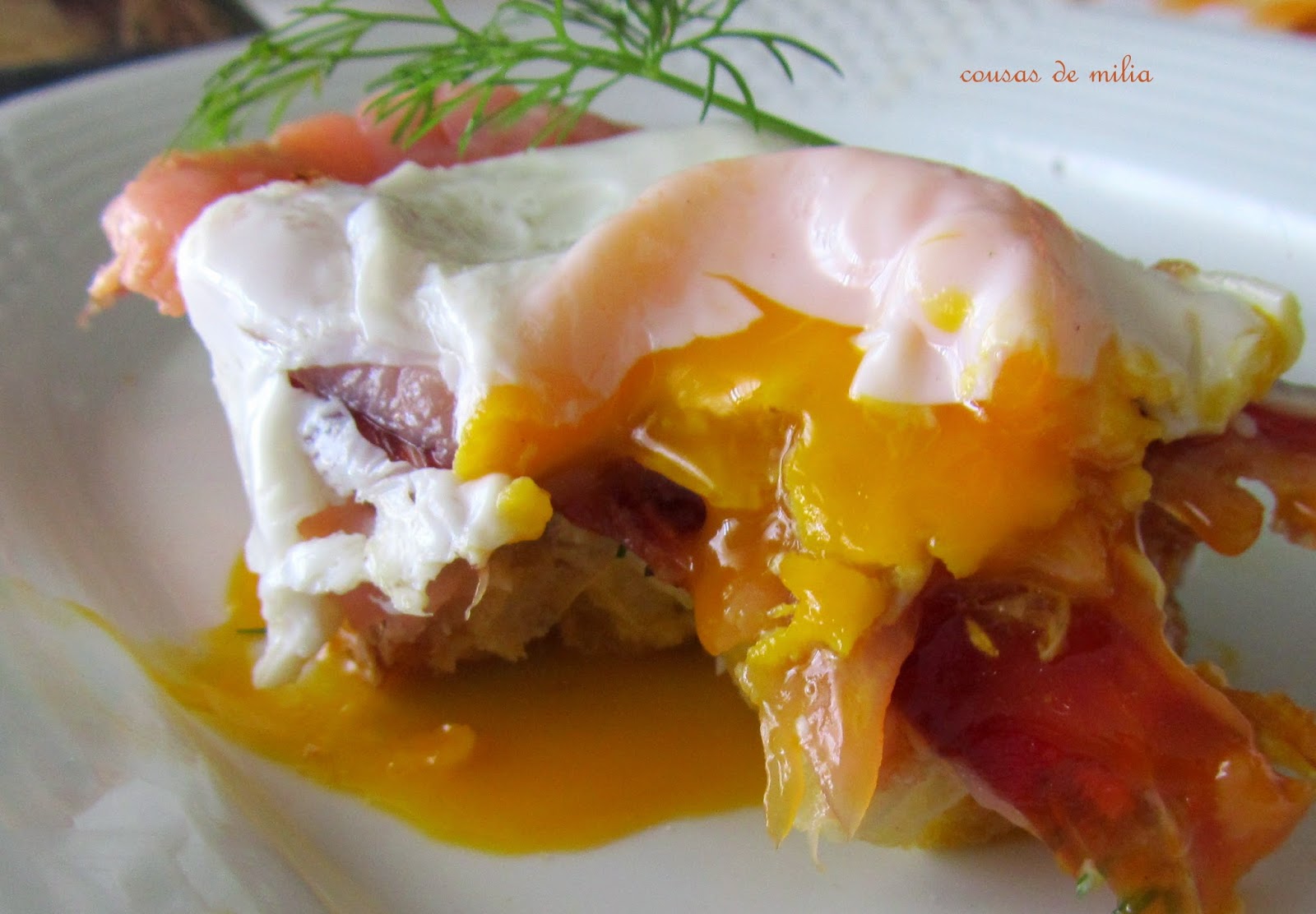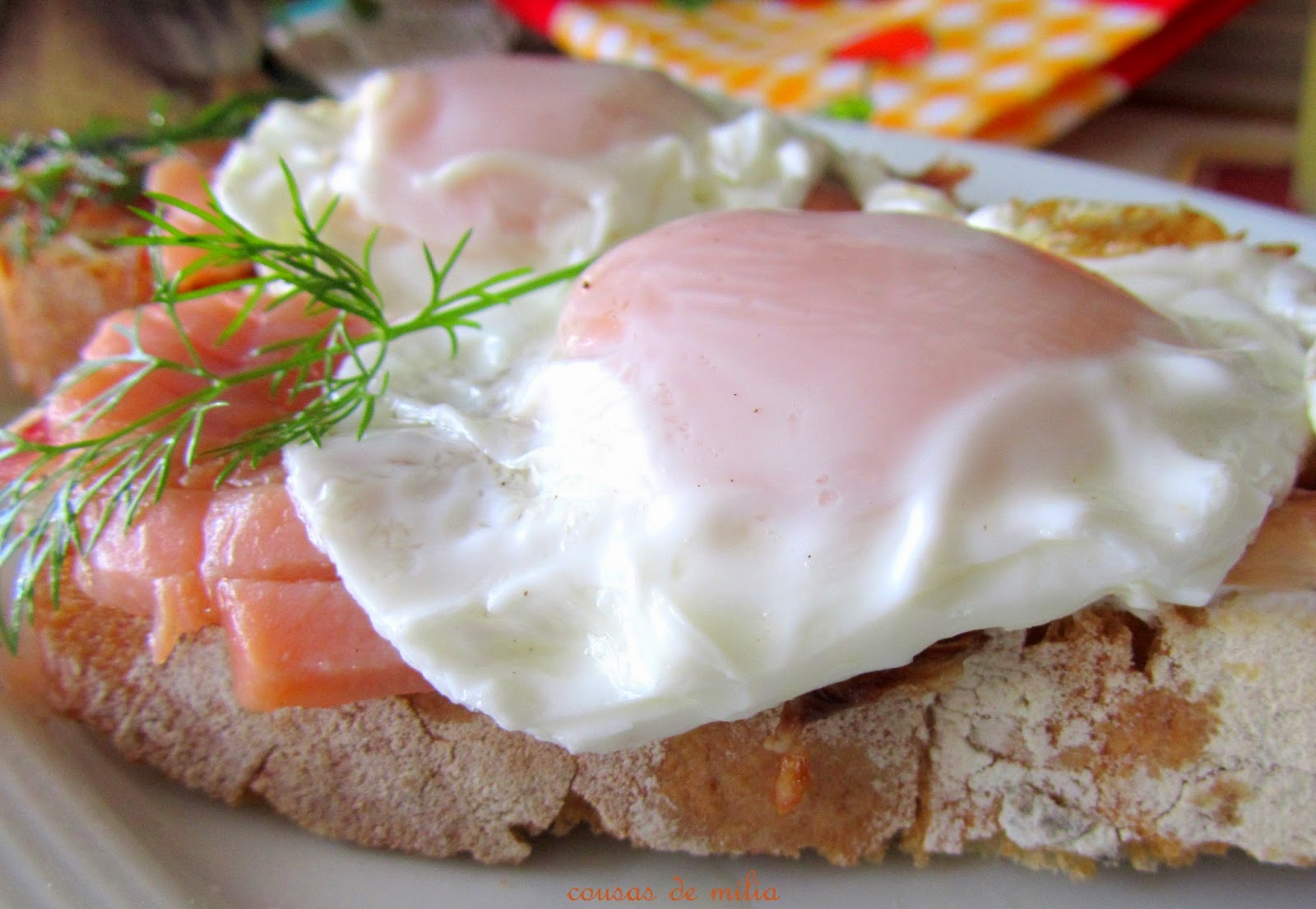 Montadito de xamón, salmón e ovos de codorniz; Bar OasisMontadito de salmón con verduras e ameixas; Cervezería EurekaSaquiños de salmón; O café de XuliaSalmón con salsa de vieiras; Mesón da EstradaIngredientes:La tosta que nos sirvieron estaba terminada con huevos de codorniz, yo le puse de gallina, pequeños, en ambos casos está deliciosaPara 2 montaditos:2 rebanadas de pan