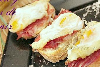 Freímos los huevos, uno a uno, y los vamos colocando sobre cada una de las rebanadas.