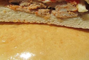 4- Dividir la masa en 6 porciones, de unos 135 gr. cada una, estirar con el rodillo en forma de rectángulos o redondos para empanadillas, humedecer los bordes con agua, colocar filetes muy finos finos de lomo o solomillo adobado, media loncha de queso y unas tiras de pimientos asados, cerrar los bordes, tapar con un paño y dejar levar una media hora.