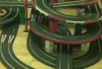 En las fotos se puede ver un circuito de scalextric con dos puertos y un collado que los une pasando por debajo de las curvas del puerto más alto.