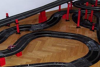 Podemos ver video, planos y fotografías de detalles, en el plano se puede ver que no cierra el circuito teoricamente, pero la flexibilidad del plástico de las pistas`permite en la práctica cerrar circuitos con estas holguras.