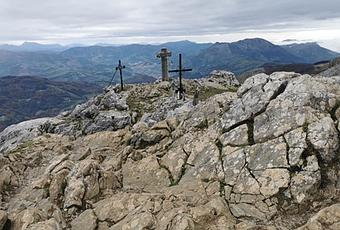 La cima emblematica de Guipúzcoa de las mil cruces. Salimos de Alkiza, pueblo situado en la comarca de Tolosa, comenzamos a ascender entre bosques hasta llegar a un par de bordas en el collado Zelatun, en las que haremos una parada cuando descendemos de la cima para tomar un caldo y un pintxo. Desde este punto el sendero es de roca muy pisada y pulida hasta llegar arriba, también encontramos muchos restos de las cruces que se colocaron en recuerdo de seres queridos, en el camino y en la cima.