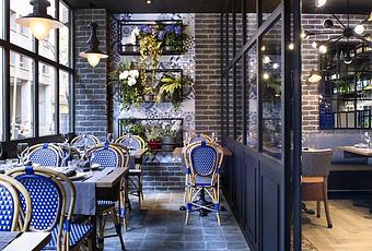 Tras sus puertas se abre un espacio fresco que cautiva a primera vista, un horizonte Classic Blue, el color escogido por PANTONE este 2020. Práctico y llamativamente sofisticado, Montes de Galicia apuesta por recetas que mezclan la tradición con las nuevas técnicas de cocina y fusión.
