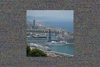 A diferencia del Tibidabo (relativamente alejado del mar), desde Montjuïc se tiene una visión privilegiada de la fachada marítima de Barcelona, incluyendo todas las instalaciones portuarias, así como hasta el Port Olímpic, algo más alejado.