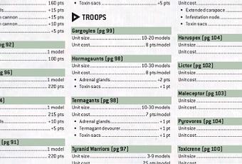 Pasamos ahora a W40K. Parece ser que alguien ha soltado una gran filtración del nuevo codex Tiranidos por la red. Y cuando "gran filtración" es realmente grande.Parece que las imágenes se dan por buenas en los mentideros de la red y que esto es material oficial.Me parece que alguien en GW va a estar muy enfadado con esto, de ser todo lo que vais a ver cierto. De todas formas,siempre es aconsejable tomarse esto con algo de precaución que nunca esta de mas.