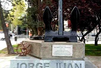 En 2014 se inauguró en la Plaza de Colón de Madrid un modesto monumento a Jorge Juan, próximo a la calle que se lleva su nombre y al Museo Arqueológico Nacional.
