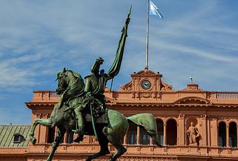 The statue of Manuel Belgrano in the Plaza de Mayo, just in front of the Casa Rosada is a monument built in bronze. It depicts General Manuel Belgrano riding a horse and holding the argentine flag. It was built in 1873 by Albert Ernest Carrier Belleuse and Manuel de Santa Coloma.