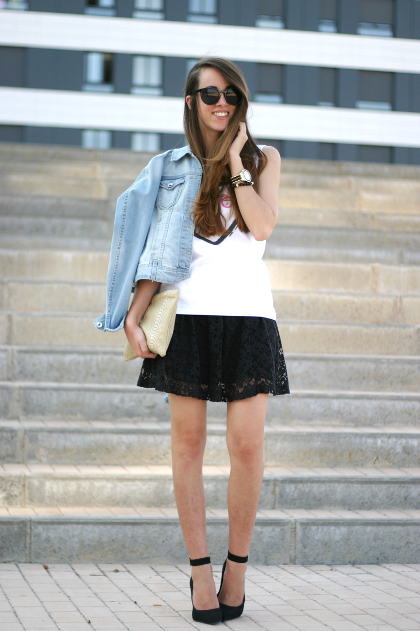 I'm wearing:Skirt/Falda - Primark(FW13-14), Denim jacket/Chaqueta vaquera - Stradivarius(Old), T-shirt/Camiseta - Manuel&Manuela(SS14)HERE/AQUI, Heels/Tacones - Deichmann(SS14), Bag/Bolso - ELLE magazine august 2014.Good morning girls,