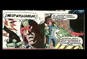 El Juez Dredd no, me, entra. Lo he intentado varias veces dado lo significativo que es en el Cómic, pero nada. No obstante, cuando menteré que había adoptado muy libremente la parte de Calígula de Yo, Claudio (1976) decidí volver a picotear. Pero no. La historia "El día en que la Ley murió!" (1978) de J. Wagner y varios dibujantes me ha parecido una mierdola. Es absurda, y los intentos que hace el guionista por racionalizarla sólo la empeoran. En fin. Os hablo dello porque en ella hay 2 escenas del principio (lo único potable) dibujadas por McArthy que me llamaron la atención: