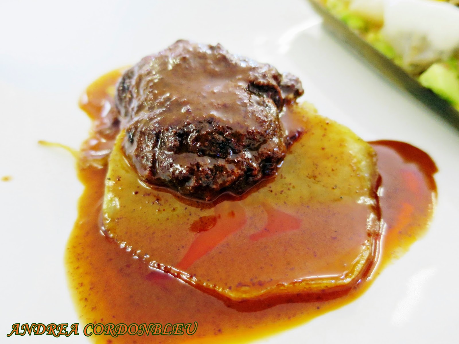 Pasta de morcilla: ½ Morcilla2 claras de huevo4 yemas de codornizJugo de Carne.