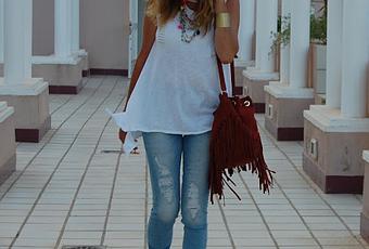 Me encanto con mis nuevos ripped jeans , sandalias gladiadoras de vestir , compra rebajis , y este collar tan espectacular del verano pasado, precioso y favorecedor total de Turulata