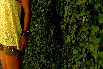 Denny Rose Shorts, H & M shirt, Cot bought in Ibiza and wedges of local shoe store.