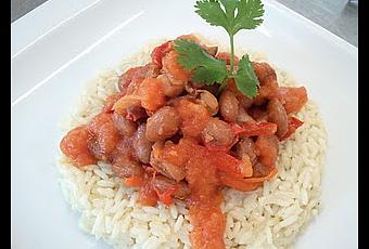 6º Por último solo nos queda presentar el plato de una manera original, por ejemplo colocando el arroz en el fondo del plato y el rehogado de judías encima.