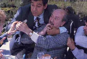 Todos ellos comparten escenas al más puro estilo Berlanga: planos secuencia, diálogos sobre diálogos sobre diálogos, desbarajuste, mil cosas ocurriendo a la vez… Los años han pasado, pero Moros y cristianos sigue siendo una absoluta gozada a todos los niveles. Quizá le falta un poquito de mala leche, pero bastante demostró ya el director en El verdugo o Plácido: también los magos de la socarronería merecen un descanso de vez en cuando contando historias más sencillas.