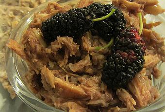 Emplatar los ramequines y decorar con frutos rojos. Yo le he puesto moras de la morera de mi jardín