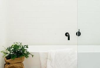 # En la pared del cuarto de baño: En este caso, podéis utilizar colores planos sin ningún problema. Si estáis pensando en utilizar este revestimiento en un aseo o en cuarto de baño pequeño, no dudes en utilizar colores como el blanco, el hueso o los grises claros.