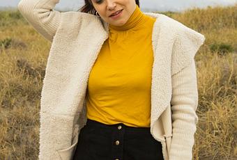 Hola chicas, que tal? En el post de hoy quería combinar estas faldas abotonadas de ante, un chollo de las re-re-rebajas de Stradivarius y tenía preparado un jersey mostaza que no uso demasiado, pero que encajaba en este trío negro-beige-mostaza. También de las re-re-rebajas, y perfecto para esta época es esta prenda mitad-rebeca-mitad-abrigo con borreguito (muy dulce, y tan calentito como parece).