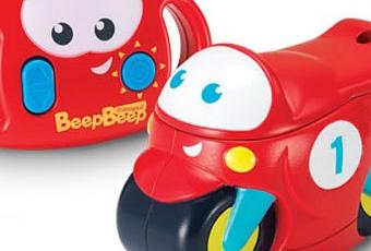 Moto Beep-Beep radiocontrol es un juguete ideal para niños con edades comprendidas entre 2 y 6 años de edad, como indica su nombre, es una moto que se dirige por control remoto con la ayuda de un mando a distancia con forma de volante, cuyo alcance es de unos dos metros.