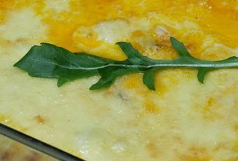 Procedemos a montar: En una bandeja de horno engrasada con aceite o mantequilla, situamos una primera capa de lonchas de berenjena. A continuación, una capa de nuestro relleno. Luego, otra capa de berenjena y otra de relleno, terminando con berenjena de nuevo. Podéis hacerla de una capa solo, si los ingredientes no os llegan a tanto. Finalizamos con una capa de bechamel y queso rallado.