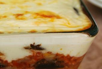 La moussaka original se prepara con carne de cordero, por si os interesa probarla, pero yo la suelo hacer con carne de ternera. Su montaje es muy similar al de una lasaña italiana, pero en lugar de capas de pasta, lleva capas de berenjena y patata.