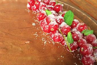 - Bates una clara de huevo y con un pincel muy delicadamente vas bañando los granos de la grosella. Donde no llegue la clara no se quedara enganchada la azúcar. Debes tener cuidado no se desgrane