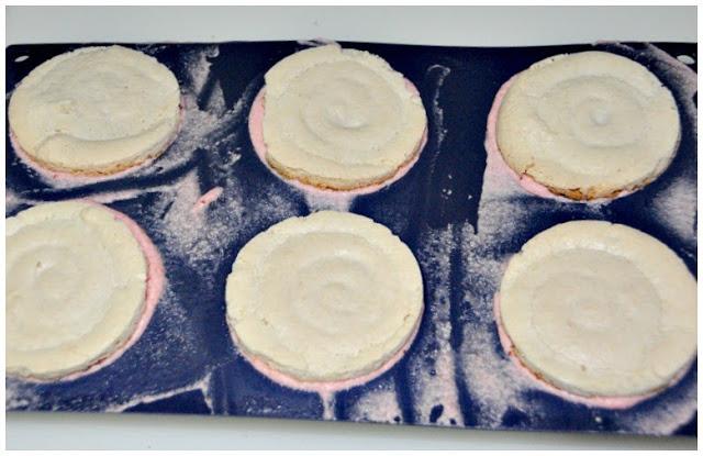 MACARONSINGREDIENTES- 50g de harina de almendras- 50g de azúcar glas- 50g de clara de huevos desecadas- 50g de azúcar blanca- colorante alimentario rosa- 25ml de agua- 1 cucharadita de agua de rosa