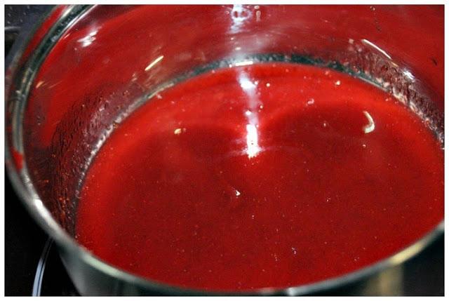PREPARACIÓN- Poner en un poco de agua fría las hojas de gelatina- En un cazo resistente al calor poner las fresas y el azúcar en polvo (en caso que usara las fresas en almíbar, añadir 2 o 3 cucharadas del almíbar que viene con la fruta sino añada dos cucharadas de agua). Cocer a fuego medio hasta que de un hervor y las fresas estén cocinadas y se puedan deshacer fácilmente.
