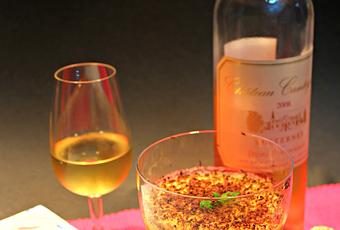 No se me ocurre vino mejor para maridar con este postre que un Sauternes, un vino dulce típico francés elaborado con uvas afectadas por la famosa Botrytis cinerea (podredumbre noble) pero vamos, un Pedro Ximénez o un moscatel patrio también irán muy bien.