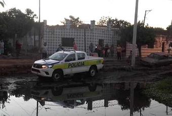 La zona está inundada de líquido por lo que no fue fácil recuperar el vehículo. Vecinos tuvieron que ayudar a los efectivos mientras protestaban por la falta de mantenimiento de las cloacas. Temen por el dengue.