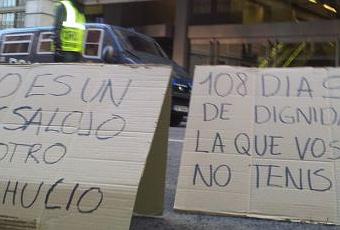 Y así mientras la banca, que ha dejado en la calle a miles de personas, recibe el segundo tramo del rescate; la policía desmantela un campamento contra los desahucios en Bankia. UNA VERGÜENZA! (con mayúsculas, en negrita y subrayado)