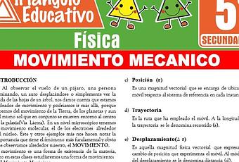 Todo este contenido ha sido preparado especialmente para que los estudiantes de Quinto grado de secundaria puedan aprender y reforzar sus aprendizajes sobre este tema de Movimiento Mecánico que pertenece al curso de física.