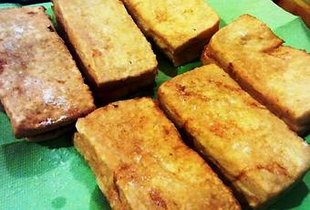 Rebozar los bocatas en harina, pasarlos en el huevo y freír en abundante aceite.