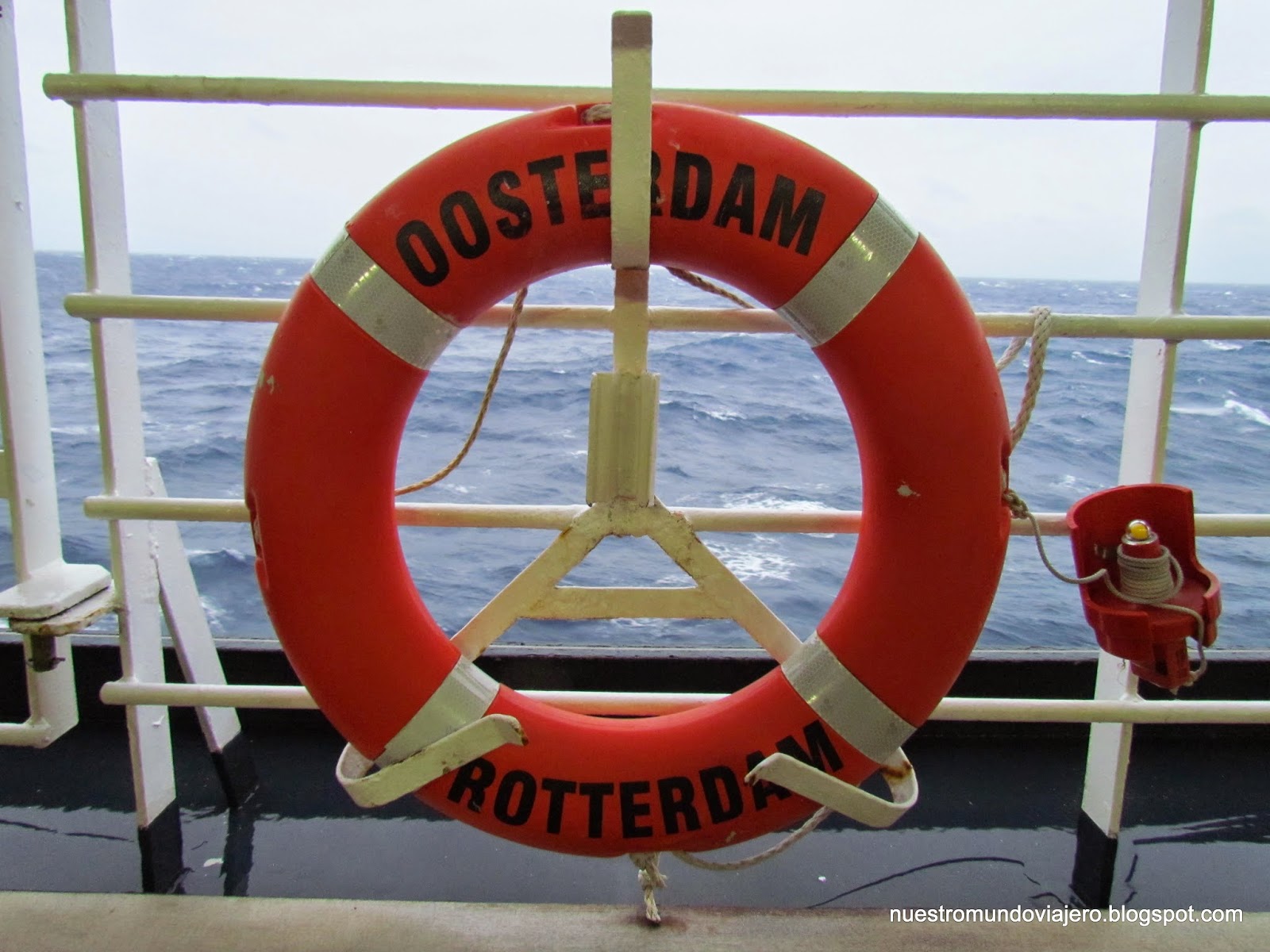 Esta enormes bitas que cortan en parte el paseo de la cubierta promenade en la popa del Oosterdam tienen como finalidad servir de punto de amarre de los cabos y cables de las máquinas de tren que guían a los barcos en su travesía a través del Canal de Panamá.