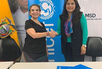 Esta colaboración interinstitucional fue firmada en un acto protocolar con la presencia de Luz Ángela Melo Castilla, Representante de UNICEF en Ecuador; y Johanna Ballesteros, Country Director de MSD Ecuador. La contribución tiene una duración de un año, durante los cuales donarán $250.000 al proyecto.