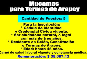 Lugar de desempeño: Termas de Arapey.Tiempo de contratación: Desde el 11/12/2023 al 29/02/2024. El plazo de la contratación es improrrogable.Cantidad de Puestos: 5