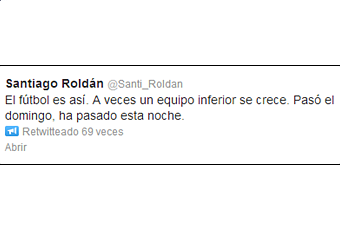 Ayer mismo pudimos ver estas manifestaciones personales en Twitter de este caballero una vez acabado el encuentro que enfrentaba al Real Madrid con su equipo: